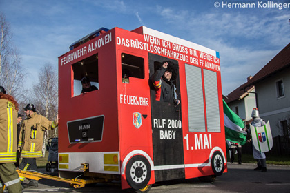 ALKOVEN: Anlass für diese Eingebung war der alle vier Jahre in Alkoven stattfindende Faschingsumzug. Die Feuerwehr ist dort zwar auch verkehrstechnisch sichernd im Einsatz, ließ es sich aber auch dieses Mal wieder nicht nehmen, mit einem Projekt direkt am Umzug teilzunehmen.