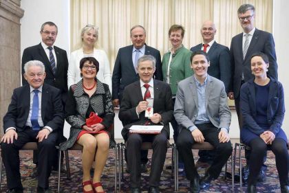 vorne: LH Dr. Josef Pühringer, Margarete Jetschgo, KR Johannes Jetschgo, Johannes Jetschgo jun., Katharina Jetschgo