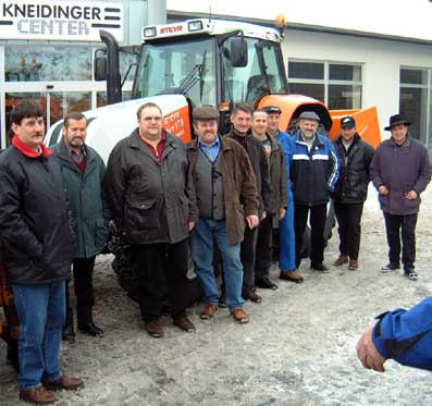 HOFKIRCHEN: Nachdem eine, bei dem seit 20 Jahren im Einsatz stehenden UNIMOG 1500 anstehende Reparatur nicht mehr vertretbar war, beschloss der Gemeinderat, ein neues Kommunalfahrzeug anzuschaffen. Zur Sicherung des Winterdienstes auf dem umfangreichen Straßennetz in der Gemeinde ist der Einsatz eines zweiten Gerätes unbedingt erforderlich. Der Gemeinderat entschied sich auf Grund der vielseitigeren Verwendbarkeit gegenüber dem UNIMOG für den Ankauf eines Kommunaltraktors der Marke "Steyr CVT 170 A" mit den erforderlichen Zusatzgeräten bei der Firma Kneidinger, Hühnergeschrei.