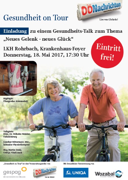 Gesundheitstalk im LKH Rohrbach Am Donnerstag, 18. Mai 2017, 17:30 Uhr macht „Gesundheit on Tour“ im LKH Rohrbach Halt.