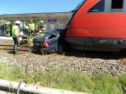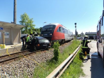 WALDING: Ein 56-jähriger Autofahrer aus Schachen fuhr mit seinem Auto auf der Waldinger Hauptstraße und wollte über die Eisenbahnkreuzung weiter Richtung Zentrum Walding fahren. Im selben Moment näherte sich eine Triebwagengarnitur der ÖBB Richtung Bahnhof Walding.