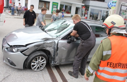 ST. MARTIN: Bei der Ausfahrt aus der Tankstelle beim Autohaus Pichler, kam es zu einer Kollision zwischen einem Auto und einem Motorrad.