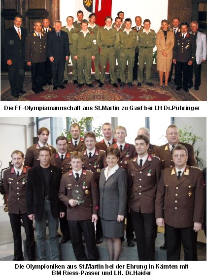 ST.MARTIN: Die FF-Olympiamannschaft der Freiwilligen Feuerwehr St.Martin i.M. wurde letzten Freitag nach Kärnten zur Ehrung durch Bundesministerin Susanne Riess-Passer eingeladen.