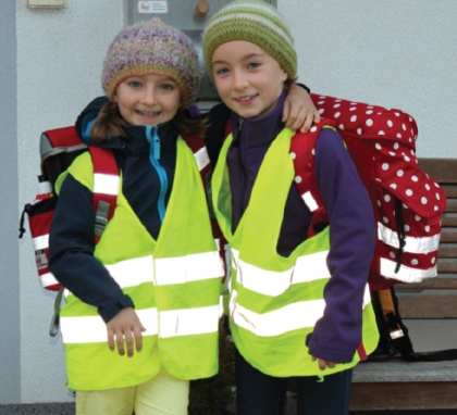 Durch rückstrahlende Teile auf Kleidung, Schuhen und Schultaschen ist Ihr Kind besser sichtbar, auch helle Kleidung ist empfehlenswert.
