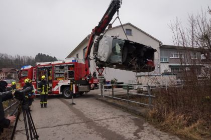 FELDKIRCHEN: Ein 17-Jähriger aus Feldkirchen an der Donau fuhr am 27. Jänner 2018 um vermutlich 4:30 Uhr in seiner Heimatgemeinde mit einem Pkw auf dem Güterweg Vogging Richtung Aschacher Bundesstraße. In einer Linkskurve fuhr er aus unbekannter Ursache geradeaus weiter, schleuderte über einen Bach, gegen einen Baum, eine Gartenmauer und wurde von dort zurück ins Bachbett geschleudert, wo der Pkw halb seitlich zum Liegen kam. Der Bursch wurde im Fahrzeug eingeklemmt und erst nach Stunden, um 9:55 Uhr von Anrainern entdeckt, welche die Rettungskräfte verständigten.