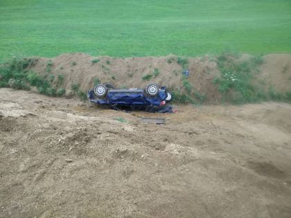 Das Heck brach aus und der Wagen kam links von der Fahrbahn ab. Der Pkw schlitterte mit dem Heck voran über eine steil abfallende Böschung gegen einen aufgeschütteten Erdwall, überschlug sich und blieb in einem Graben auf dem Dach liegen. Hinzukommende Verkehrsteilnehmer befreiten die verletzten Mädchen und leisteten Erste Hilfe.