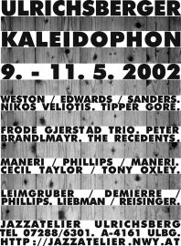 ULRICHSBERG: Do., 9. Mai 2002, ab 19.00: Weston/Edwards/Sanders - Nikos Veliotis Cello Solo - Frode Gjerstad Trio
