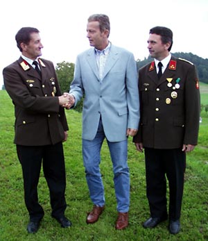 BEZIRK ROHRBACH: Das jährlich stattfindende Gartenfest der Freiwilligen Feuerwehr Hinterschiffl, dessen Reinerlös für die Anschaffung von Feuerwehrgeräten verwendet wird, nahm der ÖVP – Bezirksparteiobmann NR Dr. Reinhold Mitterlehner zum Anlass, sich beim Bezirksfeuerwehrkommandanten, Brandrat Erich Nößlböck, für den professionellen und selbstlosen Einsatz der Freiwilligen Feuerwehren im Zuge der Hochwasserkatastrophe zu bedanken.