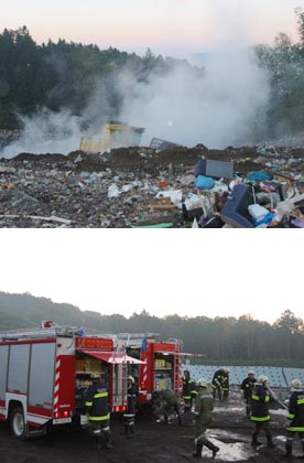 ST.MARTIN: Zum zweiten Mal innerhalb eines Monats wurden die Feuerwehren aus St. Martin zu einem Brand auf der Mülldeponie gerufen. Am Mittwoch, 09.10.2002 heulten um 6.29 Uhr am Morgen die Sirenen in St. Martin, Plöcking und Untermühl. Gleichzeitig informierten die neuangeschafften Pager alle Feuerwehrmänner, die die Sirenen nicht hören können. So kam es zustande, dass letztendlich über 50 Mann zu diesem Brand ausrückten.