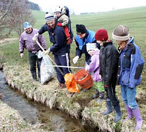 An die 60 Personen stellten sich in den Dienst dieser guten Sache, die vom Umweltausschuss der Gemeinde initiiert und koordiniert wurde. Nach der Säuberungsaktion lud Bürgermeister Otto Pfeil die Helfer zu einem kleinen Imbiss ein.