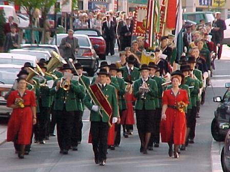 Die Stadtmusikkapelle Rohrbach unter Stabführer Andreas Schönberger geleitete in einem "farbenprächtigen" Festzug die Geburtstagsgäste zum Gasthaus Harmach, wo der Veranstaltungsreigen in einem kurzfristig von einem Billardsaal in einen repräsentativen umgestalteten Festsaal fortgesetzt und abgeschlossen wurde.