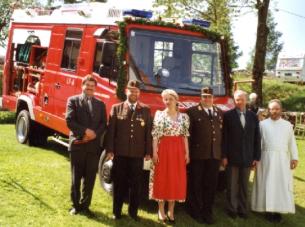 übergeben und von Pfarrer Ludolf Miesbauer gesegnet. Die Finanzierung musste zwischen Gemeinde, Feuerwehr und Landesfeuerwehrverband aufgeteilt werden,